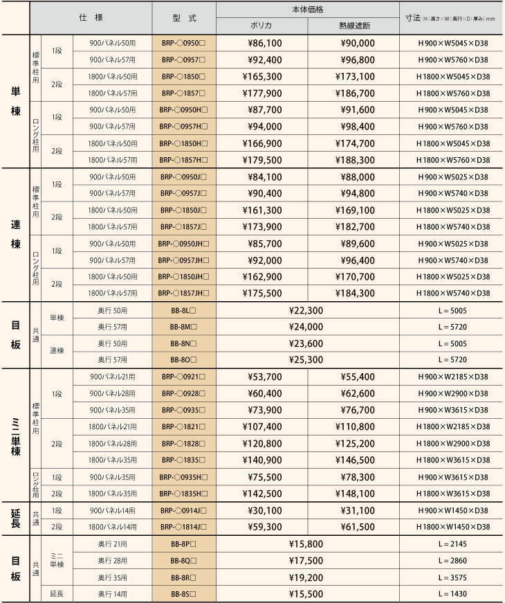 【注】価格は本体色(D/G/K/W)に関わらず同一です。